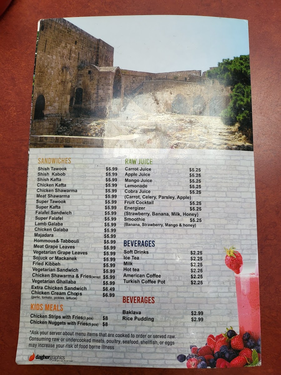 Refreshing juices and smoothies offer light, flavorful choices to complement the savory dishes, making the experience feel balanced and fresh. From simple salads to generously portioned kebabs, the menu supports moments that are both casual and fulfilling throughout the day.